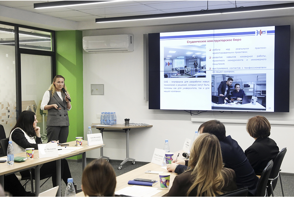 Круглый стол «Компетентностный профиль инженера: опережающая подготовка для решения задач технологического лидерства» стал площадкой, на которой представители отрасли и университета провели открытый диалог посвященной проблеме подготовки кадров для высокотехнологических отраслей. В мероприятии приняли участи представители компаний Рубиус, АО «ИЭМЗ «Купол», АО «НИИМЭ» (ГК «Элемент»), АО «НИИПП», АО АО «ЭлеСи», «НПФ «Микран», ООО НПК «Тесарт», ООО «Лифорс» и других. Модератором выступила ведущий специалист отдела развития персонала ООО «РН-Проектирование Добыча» Ирина Трубченинова.
