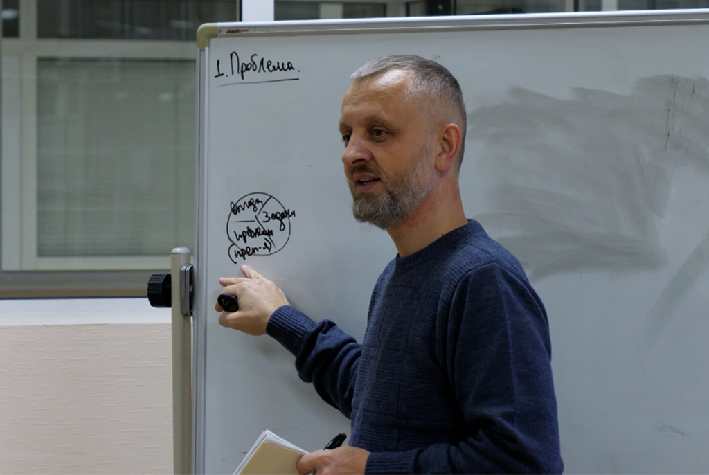 Практическое занятие для команд акселератора провёл Николай Золотарёв — бизнес-консультант в сфере малого и среднего предпринимательства, трекер акселерационной программы «Стартап-Полигон» ТУСУР, кандидат экономических наук.